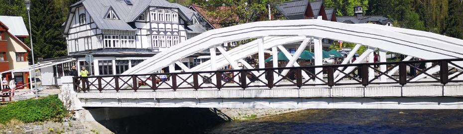 insbesondere in Böhmen wie am Vortag idyllische Wege, Spindlermühle mit netter Kaffeepause an der "Weißen Brücke" über die Elbe als Flüsschen, in Südpolen Vermeidung völlig überlaufener Sonntagsausflugsziele (norwegische Stabkirche "Wang"), abends Wiedersehen mit dem nachgereisten Sven