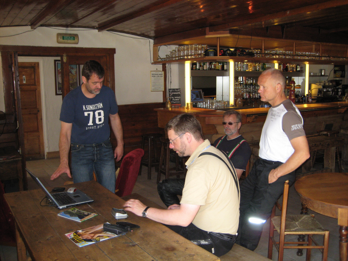Gleich morgens die schlechte Nachricht von Mitbewohnern unseres Hotels: eine Riesenmure blockiert die Grenzstraße zwischen Susa und dem Lac du Mont Cenis! Eigentlich wollten wir durch das Claréetal und den Col di Montgenevre nach Italien, über den 36 km langen Schotterleckerbissen, der "Assietta-Kammstraße", nach Susa und weiter am Kloster Novalesa vorbei zum Lac du Mont Cenis. Nach einer improvisierten Internetrecherche