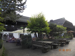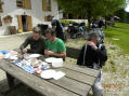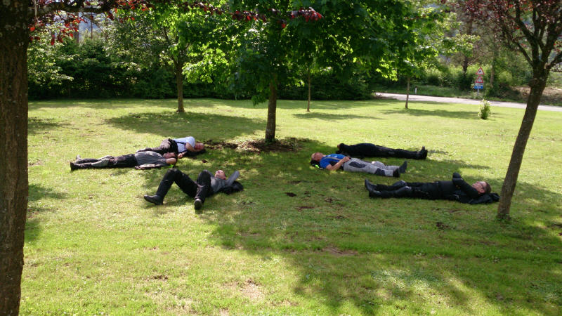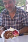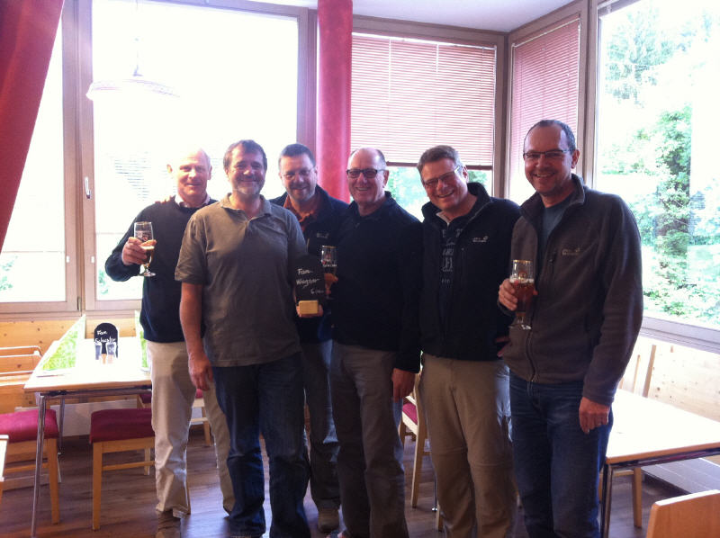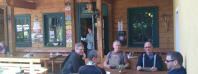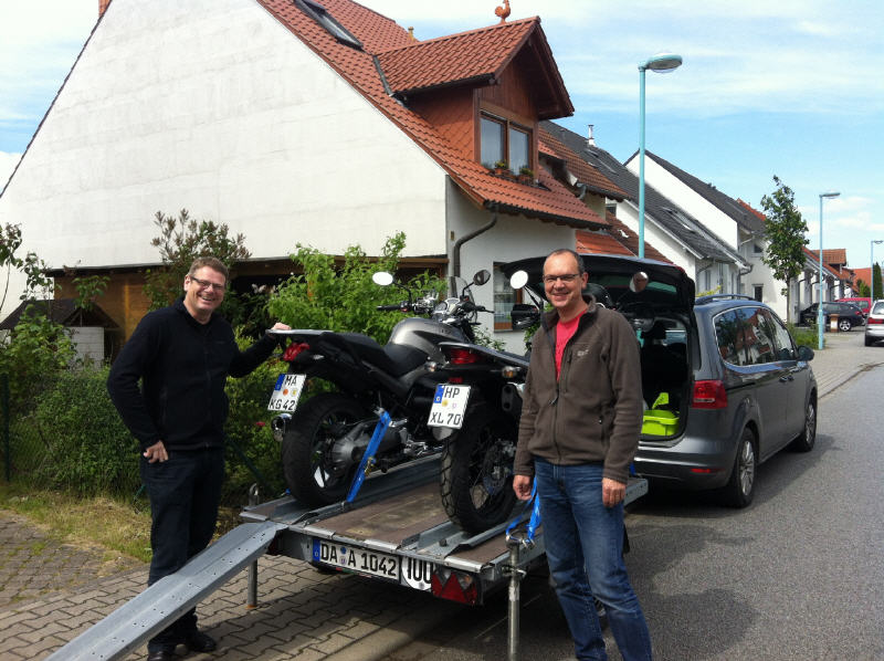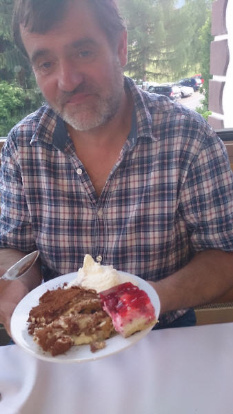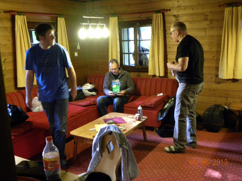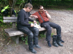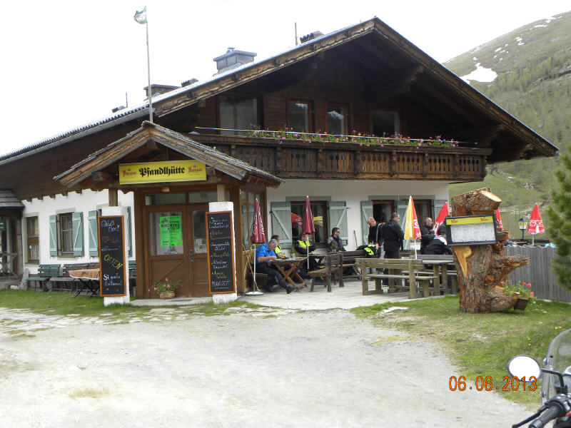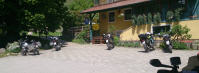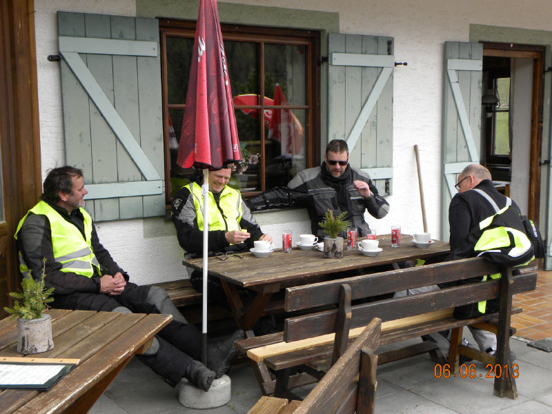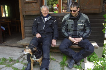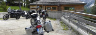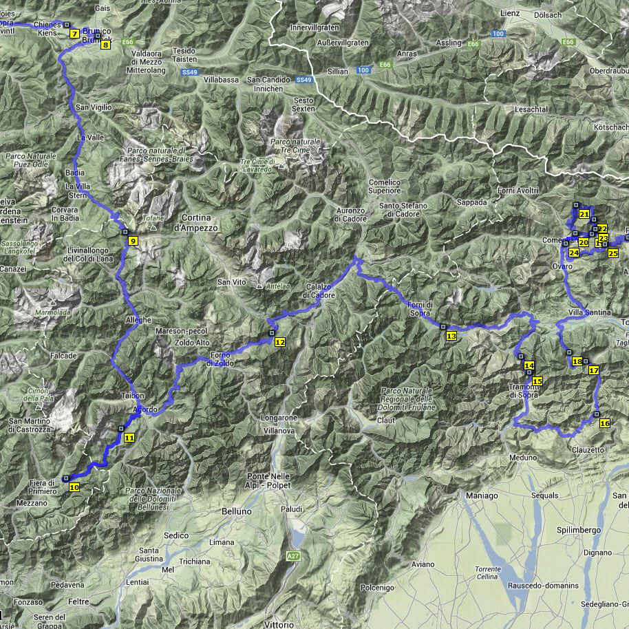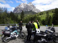Wir hatte uns mit salami-käse-weinvollen Mägen gerade im Autozug bequem gemacht, als die Durchsage kam, dass aufgrund der Hochwassersituation in Österreich bereits in München statt Bozen Endstation ist. Bereits gegen 01.00 Uhr waren wir wohl in München, wurden aber erst um 6.00 Uhr zu unseren verzurrten Schätzchen gelassen. Angenehm früh gegen 7.00 Uhr kamen wir los und erreichten bei ungemütlich nasskaltem Wetter kurz vor Mittag den Brenner. Unmittelbar mit den ersten italienischen Verkehrsschildern riss die Wolkendecke auf und die Fahrt nach Bruneck im Pustertal war wunderbar. Auf dem zentralen Platz trafen wir unsere Mitfahrer Kai und Matthias. Dann ging es quer durch die Dolomiten an deren südlichen Rand nach Tonadico im Cismontal. Abseits der Landstraße zum Cereda-Pass fanden wir über einen kleinen Schotterweg den familiären Bauernhof "Agritur Dalaip Dei Pape". Zunächst genossen wir ein kühles Bier auf der Panoramaterrasse und schauten uns auf dem Hof um: neben ausgedehnten Beerenplantagen gab es auch essbare Fauna incl. 2 Bisons ! Ein vorzügliches Abendessen (wunderbare Pastavariation mit anschließendem Käse-Wurst-Fruchtsoßenteller ...) schloss den ersten leicht unplanmäßigen ersten Tag erfolgreich ab.