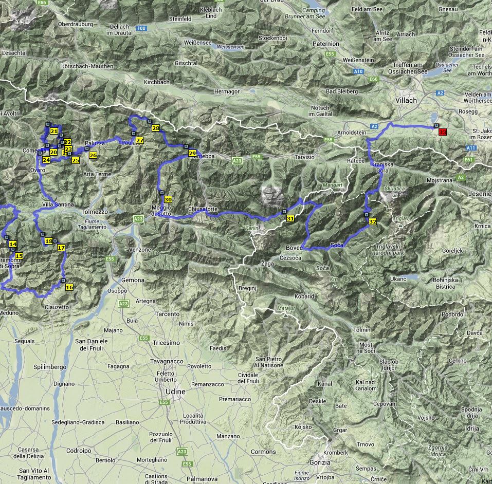 Die Eckpunkte unserer diesjährigen Tour: 02.06. bis 10.06.2013, Veneto, Friaul, Kärnten, Slowenien.
