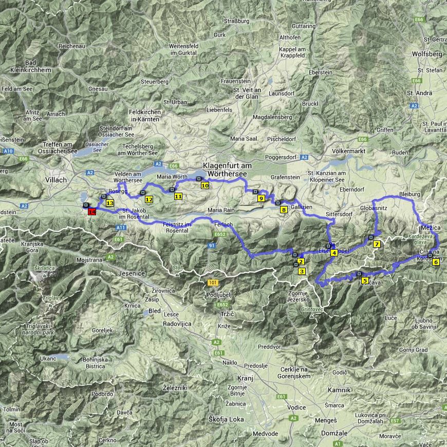 . Durch einsame slowenische Täler gelangten wir über Trzic zum Loiblpass und auf der nördlichen Seite des Rosentals zurück zum Hotel.