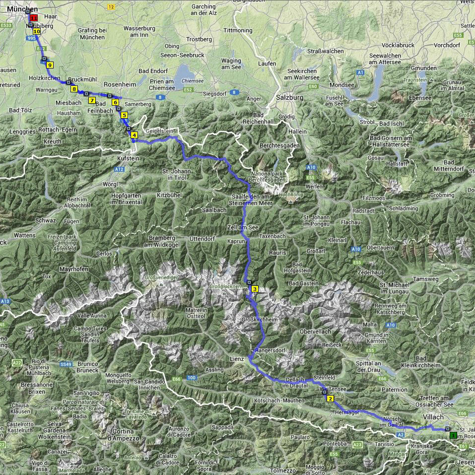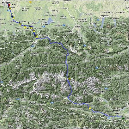 1. Tag (München - Bruneck - Tonadico) 391 km