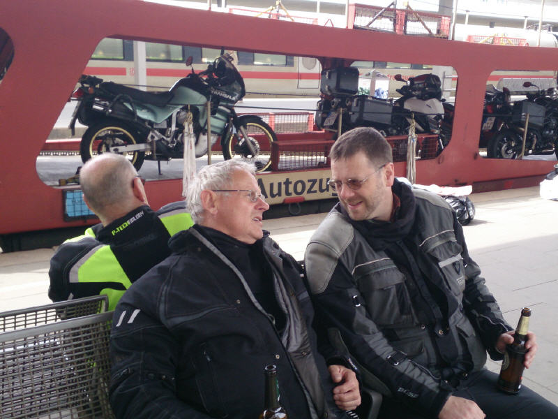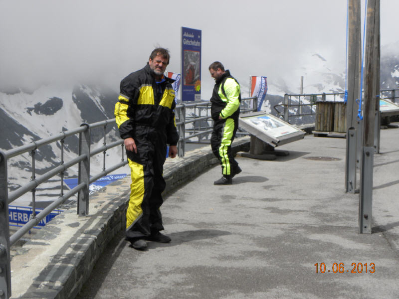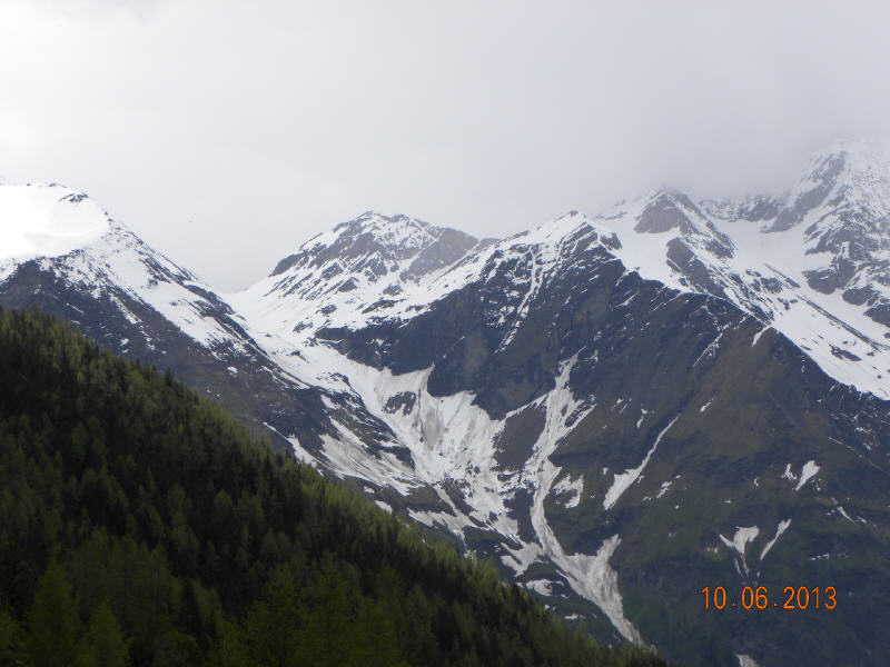 Österreich war noch immer für den Zugverkehr blockiert, also machten wir uns eigenrädrig auf den Weg zur Abfahrt des Autozuges aus München. Über Weißbriach wechelten wir in das Drautal und gelangten über den Iselsberg in das Mölltal zur Mautstelle der Großglocknerstraße. Das Wetter war trocken, aber bedeckt mit hochprozentiger Regenwahrscheinlichkeit. Aber welch Überraschung: die Königin der Alpenstraße zeigte sich sonnig mit tollen Wolken, teilweise unterhalb unserer Strecke. Der Besuch der Franz-Josephs-Höhe gab den Blick frei auf die erschreckend spärlichen Überreste des einst riesigen Pasterzengletschers. In diesem Jahr hielt der Rückgang um 100 Meter den Rekord im ganzen Alpenraum. Durch das Pinzgau (Hartmuts Kinderstube) konnten wir über die Autobahn ab Kufstein sämtliche Hochwassersperren elegant umfahren und waren rechtzeitig zur Abfahrt unseres Autozuges am Nachmiitag am Bahnhof München Ost.