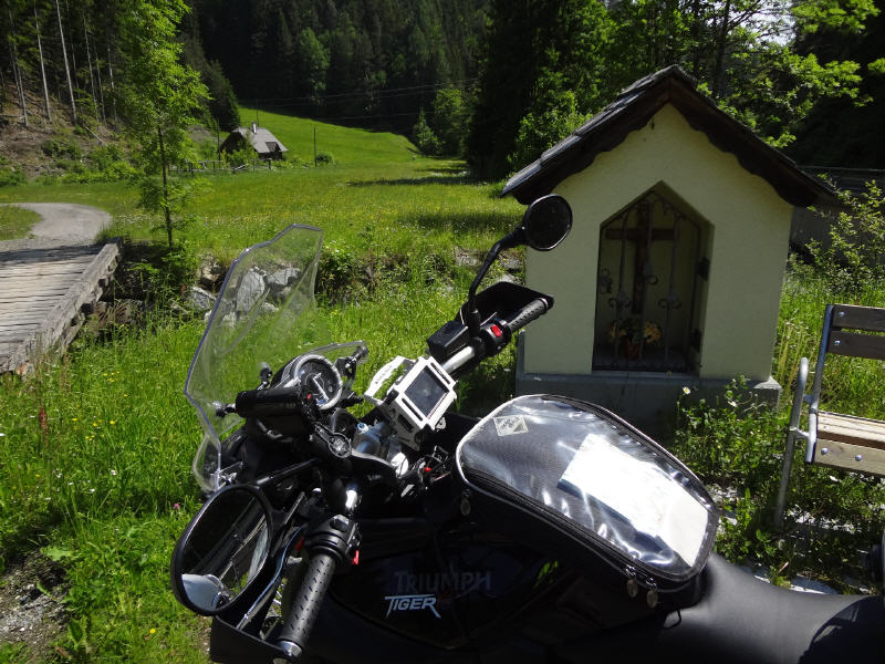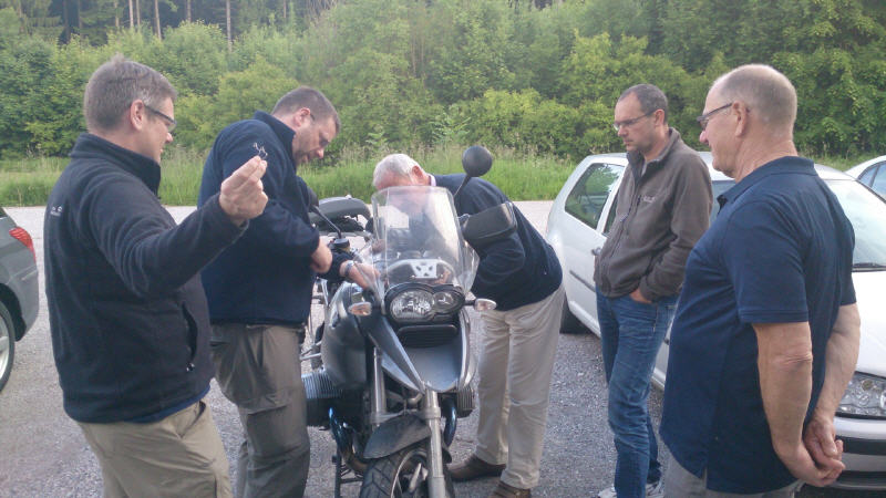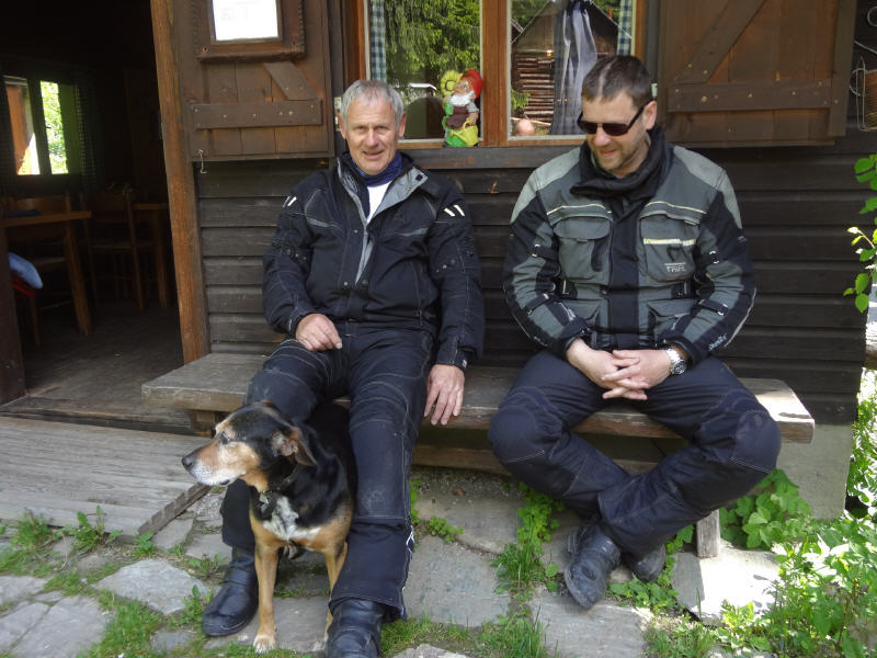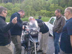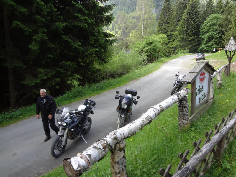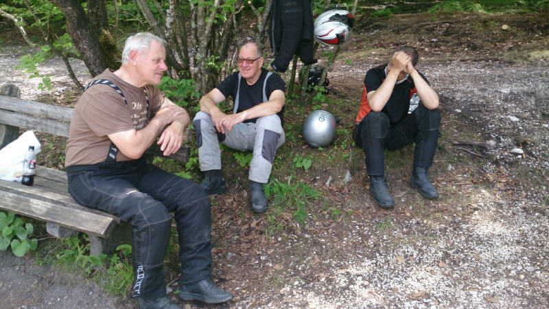 . Bei jeder seiner Maschinen konnte er von erfindungsreiche Sackgassen der Motorradentwicklung berichten (Verlustschmierung mit Handpumpe bei Bergauffahrten, hochklappbarer Beiwagen als Umwandlung zur Solomaschine etc.). Kurz vor dem Seebergsattel bogen wir links ab zum abgeschiedenen Paulitschsattel nach Slowenien
