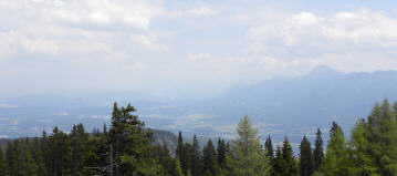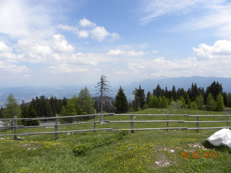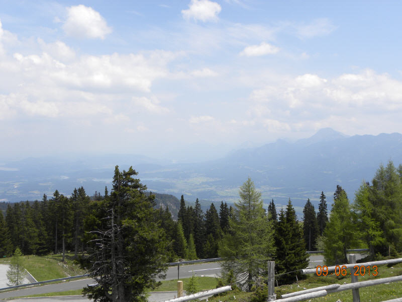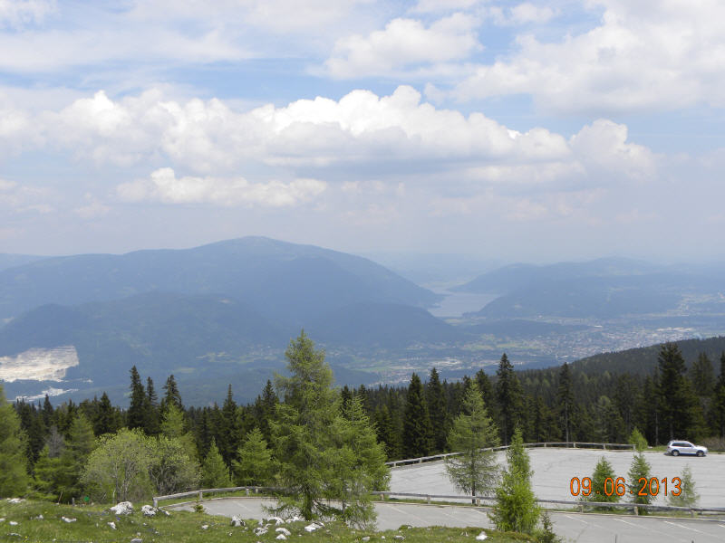 Zunächst führte uns die Route auf der östlichen Seite des Drautales auf ca. 1000 m Höhe zum Millstädter See, an dessen Ufer wir ein Eis genossen und den verzweifelten Lernversuchen auf einem Wave-Board hinter einem Motorboot zuschauen konnten. Die mautpflichtige 34 km lange Nockalmstraße (Nockberge sehen aus wie Klöße) wra leider touristisch etwas abgelutscht (Hochgebirgslehrpfad mit beidseitigem Holzgeländer um einen kleinen See herum ... grottenschlechter Cappuccino ...). Da ist das Friaul viiiiel authentischer. Nach der Fahrt durch das Gegendtal mit den Badeseen Feldsee und Afritzer See haben wir dann noch die Gerlitzen-Gipfelstraße (7 €) ausgekundschaftet, konnten aber nicht wie geplant über den Gipfel zum Nordufer des Ossiacher See ins Tal fahren, sondern mußten an der wilden Gipfelstationarchitektur (Lifte, Hotels, Restaurants - alle auf die Kuppe gequetscht) umkehren.