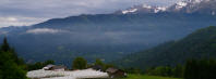 mit beeindruckenden Wolkentürmen über den südlichen Berggipfeln der Norditalienischen Voralpen.