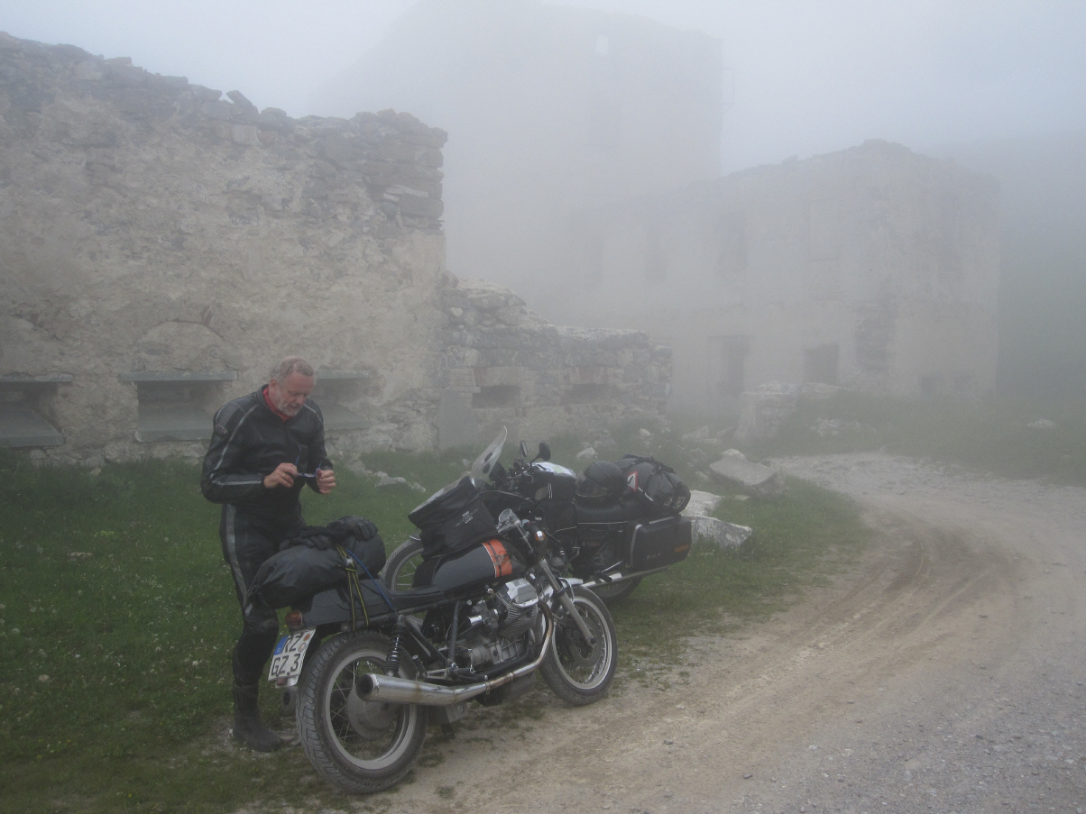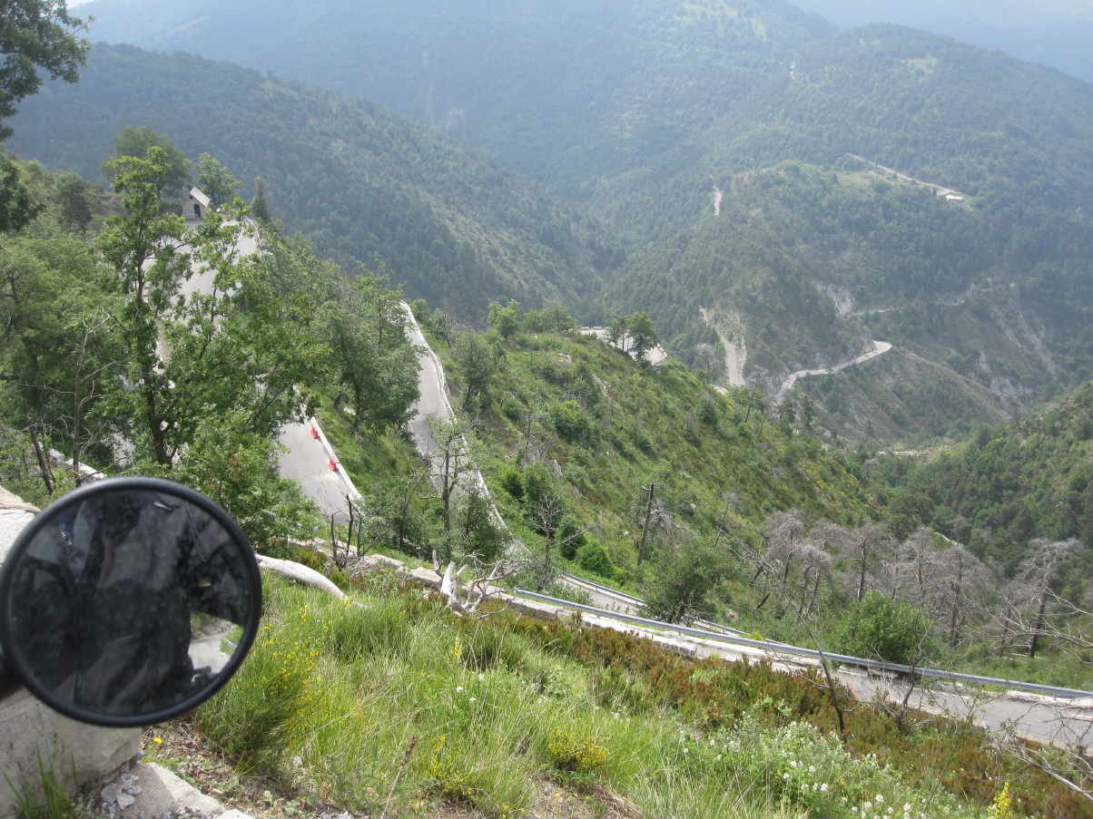 doch noch vollstrecken, allerdings mit einigen Hautratschern aufgrund der Dünung und dem scharfen Felsbewuchs. Über weitere Cols (Col d’Erc - Col du Perus - Col de Brouis) genossen wir anschließend die weiten Kehren im Roya-Tal nach La Brigue. Manfred und Hartmut hatten bei der Ankunft in unserem Hotel immer noch nicht genug und fuhren die schrillen 49 Kahren zum Col di Tende hinauf in den Nebel am Fort Central