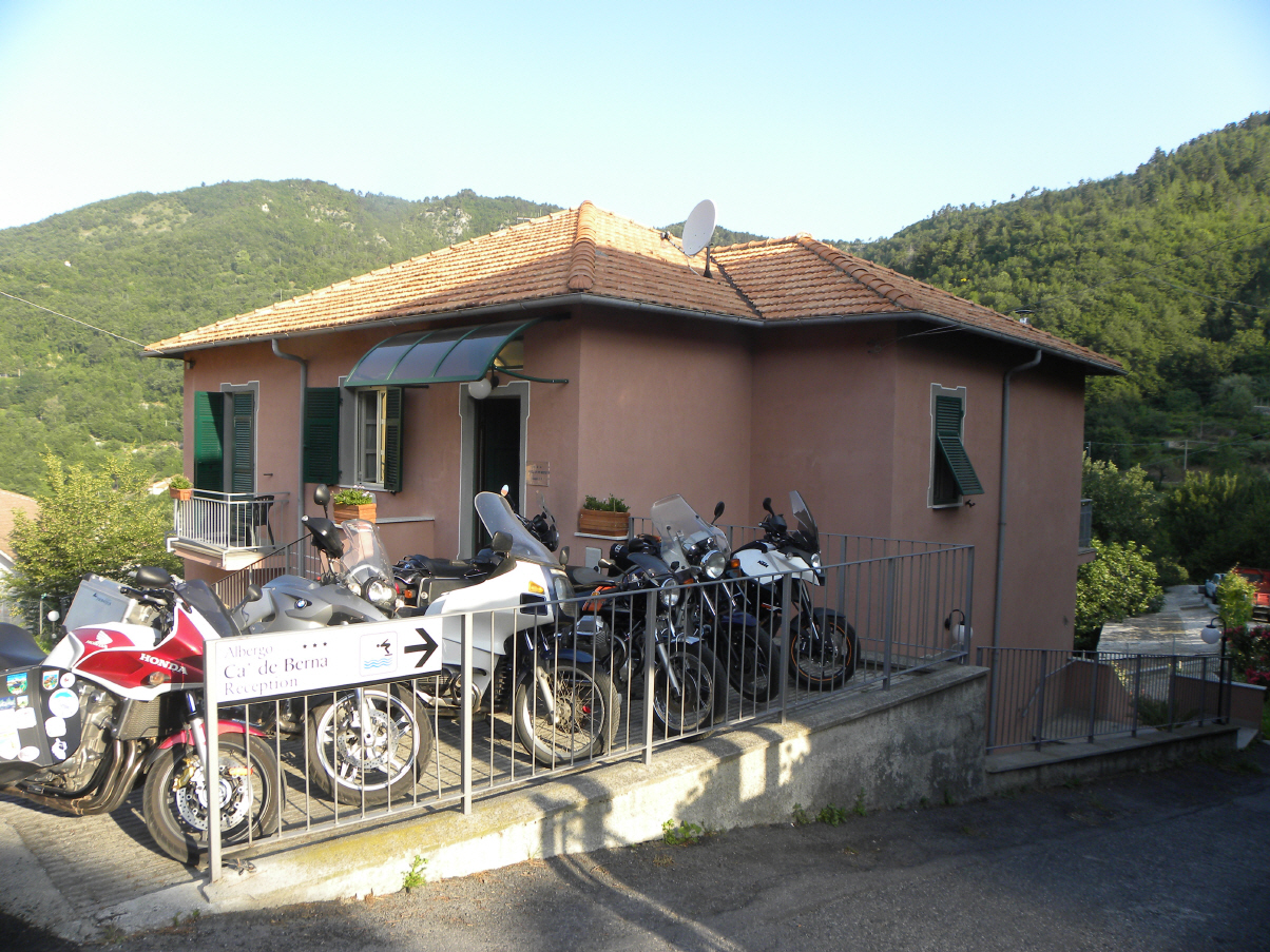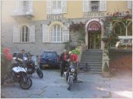 des Hotels. Von Rapallo führten verschlungene Nebenstraßen rund um Genua über Sassello (Wiege der italienischen Amaretti-Gebäcks) nach Ballestrino an der Riviera ponente. Unter weitgehender Vermeidung der zähen Uferstraßen bot das bergige ligurische Hinterland Fahrspass ohne Ende (filmisch dokumentiert). Für eine entspannende Mittagspause bot sich der Passo del Faiallo