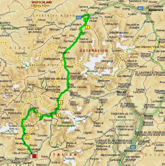 . Anschließend ging es über die flotte Reschen-Bundestraße zum Reschenpass, wo wir rechts in Richtung Schweiz nach Müstair abbogen.