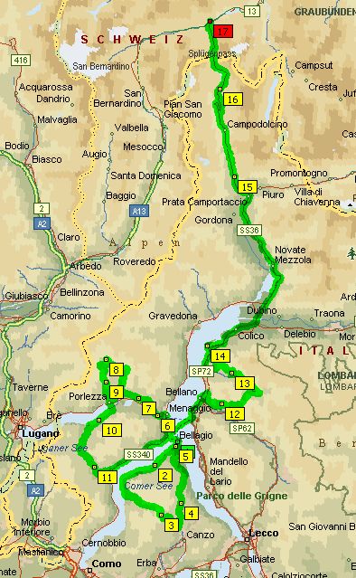 des Nachmittags folgte die etwas langatmige Fahrt am Westufer des Comer Sees nach Norden über den Splügenpass