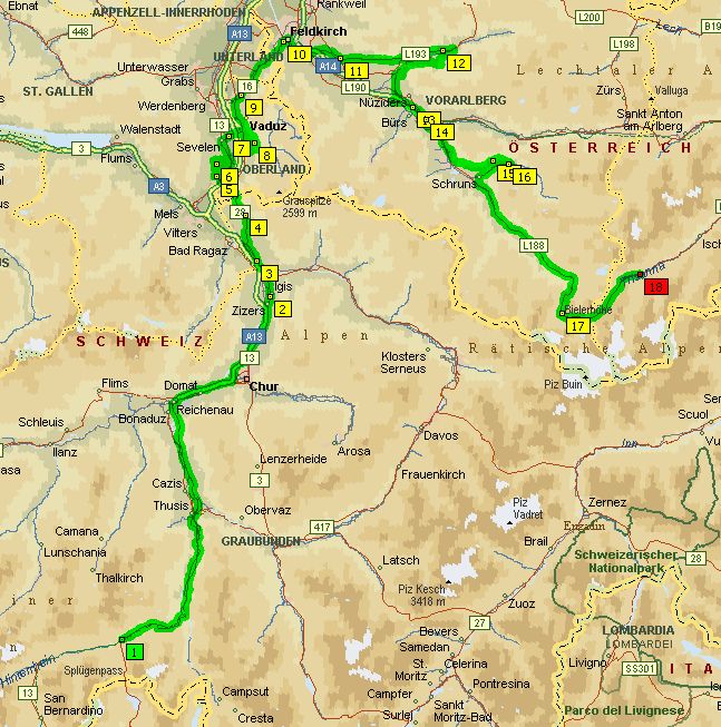 gelangten wir nach Liechtenstein. Über Vaduz und Feldkirch erreichten wir das Montafon. Nach einem Schlenker in das Große Walsertal folgte die aussichtsreiche Dünserberg / Walgau-Höhenstraße
