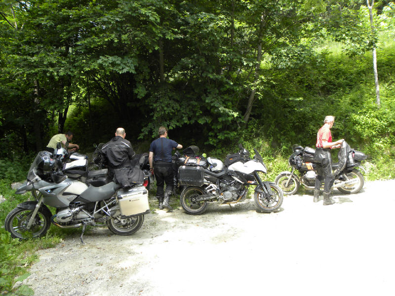 Zurück in Italien genossen wir kleine Nebenstraßen im Val Varaita, im wildromatischen Vallone dell' Elva und im Mairatal. Einzelbildlich dokumentiert ist dieser Abschnitt nur in Form der Mittagspause