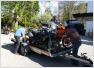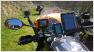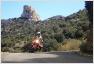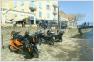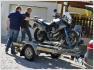 Die Holsteiner fuhren auf eigenem Reifen und mit 2er-Anhänger nach Damme. Dort verluden wir die Moppeds auf einen großen 4er-Anhänger und rutschten in einer Gewalttour über Nacht bis an die spanische Grenze nach Prades in die "Villa du Parc", wo wir das Gartenhaus mit 2 Ferienwohnungen bezogen mit Blick auf den Pic du Canigou (2785 m), dem höchsten Berg Kataloniens.