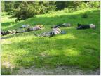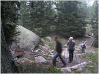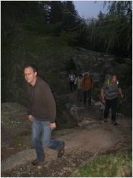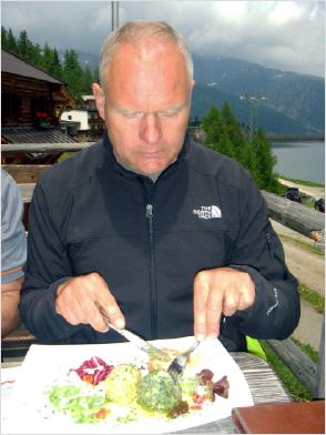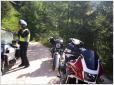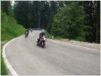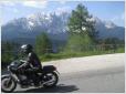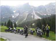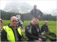 Für die ganz Harten (Fred, Lutz, Manfred, Matthias und Hartmut) ging es um 4.30 Uhr los zu einer Sonnenaufgangswanderung ohne Sonne - leider war der Himmel wolkenverhangen, aber die "Stoanerne Mandln" (Steinfiguren, die der Sage nach versteinerte Neugierige darstellen, die den Hexen beim Tanzen zuschauen wollten) waren die Mühe wert. Nach einem wie immer ausgiebigen Frühstück führte die Südtiroler Runde um den Bozener Hausberg, den Ritten herum nach Klobenstein. Anschließend ging es über Lengmoos und Maria Saal am westlichen Rand des Eisacktals nördlich bis Brixen. Durch den Kleranter Wald genossen wir die wildromantische Fahrt über Afers zum Halsl (auch Kofeljoch genannt), danach bogen wir kurz unter dem Würzjoch vorbei in das Lasankenbachtal und anschließend in das Lüsental ab. Über die Rodenecker Alm erreichten wir das Pustertal, wo sich ein kleiner Ausflug in das Weitental anschloss. Zurück im Eisacktal rutschten wir auf der Brenner-Autobahn bis Sterzing. Über das alpine Penser Joch gelangten wir in das Sarntal. Der Durnholzer See war leider nur nach einem längeren Fußmarsch zu erreichen - für Motorradfahrer unerreichbar ... Also nichts wie hin zum leckeren Abendessen in unser Hotel.