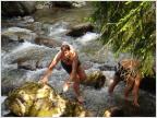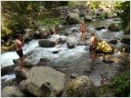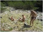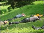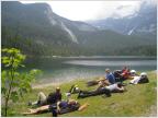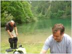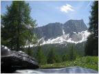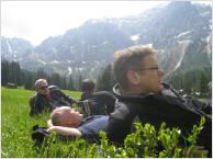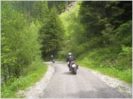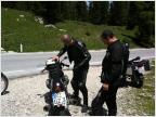 Aufgrund kleiner technischer Hindernisse (kaputter Rückspiegel bei Hartmut, schwächelnder Motor bei Lutz) entschieden wir uns zu einem Besuch der BMW-Motorradniederlassung in Bozen. Lustlose und unfreundliche Mitarbeiter weckten die Eigeninitiative in uns, sodaß wir schleunigst reissaus nahmen und die Probleme mit gemeinschaftlichem Halbwissen und Bordmitteln selbst lösten. Zunächst kletterten wir über den Mendelpass auf die Kalterer Höhe. Südlich des Lago di San Giustina bogen wir in Tuenno zum Lago di Tovel ab. Die Mittagspause am See incl. einem Bad der Unerschrockenen war entspannend. Die an heißen Sommertagen auffällige Rotfärbung des Sees war an diesem Tag nicht zu beobachten. Nach Durchquerung des heiß-stickigen Etschtals ging es in langen Kurven das Avisiotal hoch nach Cembra. Das Avisiotal mündet in das Val di Fiemme. Durch das Eggental schloss sich der Kreis dieser Tour.