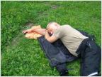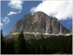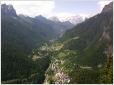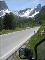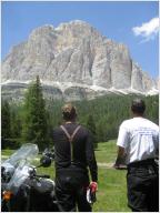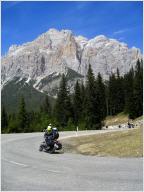 Die Tour durch die Zentraldolomiten begann mit der bereits am 2. Tag gefahrenen Schleife über Tiers und den Nigerpass zum Karerpass und hinunter ins Fassatal. In Canazei entschlossen wir uns, angesichts des massiven Ausflugverkehrs auf der großen Dolomitenstraße die gemütlichere Strecke über den Fedaiapass an der Marmolata vorbei ins Fiorentinatal zu nehmen. Nach der Überquerung des "Belvedere Colle S. Lucia" folgte der Aufstieg auf den beeindruckenden Passo Giau. Die Mittagspause genossen wir bei herrlichem Sonnenschein an einem Bach am Falzaregopass. Über das Valparolajoch und das Gadertal fuhren wir auf das Würzjoch. Anschließend hangelten wir uns am Nordrand des idyllischen Villnösstal über Laion und das Grödnertal bis nach Kastelruth. Dort fand an diesem Abend ein Open-Air-Konzert der berüchtigten K.-Spatzen statt - entsprechend mühsam war der Slalom zwischen parkenden Autos und Reisebussen und pilgernden Rentnermassen. Über Völs am Schlern ging es wieder zurück nach Bozen und hinauf zu unsserem Hotel.